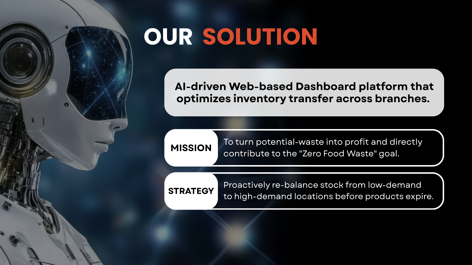 ปัญหา Food waste เป็นปัญหาใหญ๋ในปัจจุบัน โดยแพลตฟอร์มนี้จะวิเคราะห์สินค้าทีี่มียอดขายต่ำและใกล้หมดอายุ จากนั้นจะหาร้านค้าสาขาใกล้เคียงที่มียอดขายสูงหรือวิเคราะห์แล้วว่าคุ้มค่าเมื่อย้ายสินค้าไปขายที่สาขานั้น ๆ